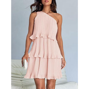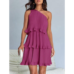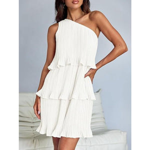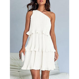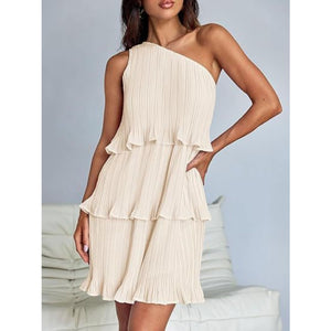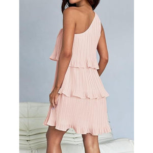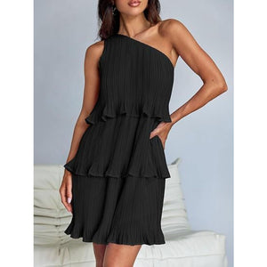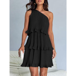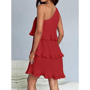 Layered Single Shoulder Mini Dress