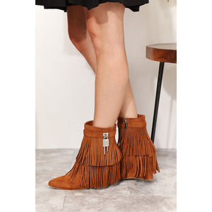 Legend Women's Tassel Wedge Heel Ankle Booties