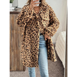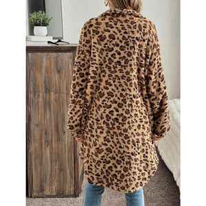 Leopard Button Up Long Sleeve Fuzzy Coat