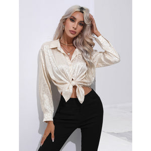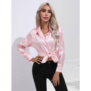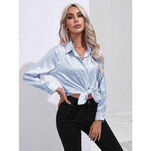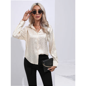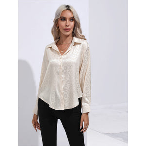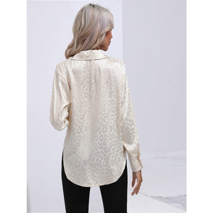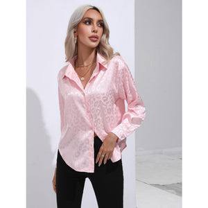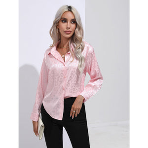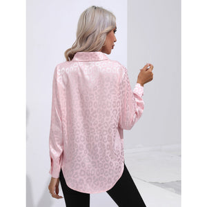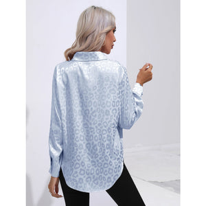 Leopard Collared Neck Long Sleeve Shirt
