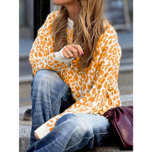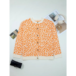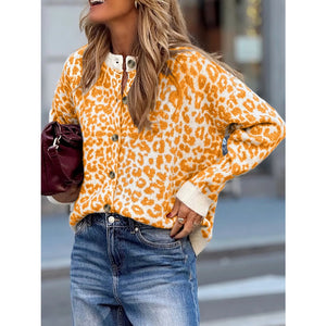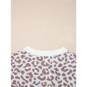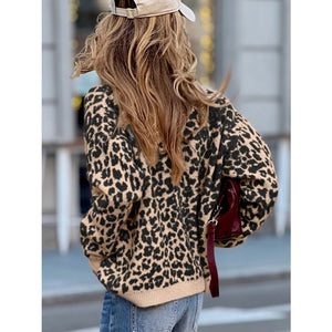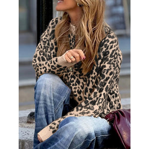 Leopard Drop Shoulder Chunky Knitted Cardigan