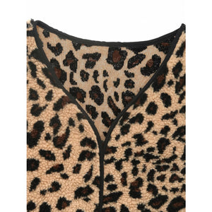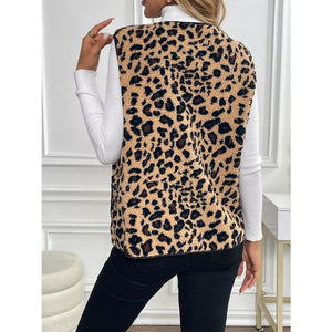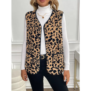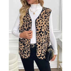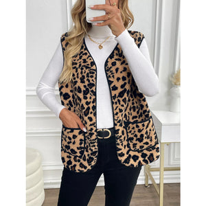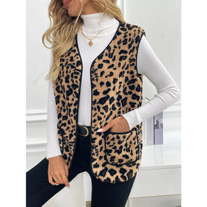 Leopard Fleece Vest Coat with Pockets