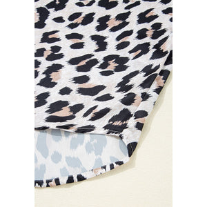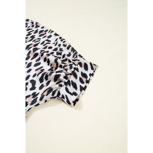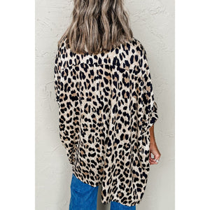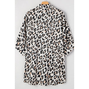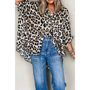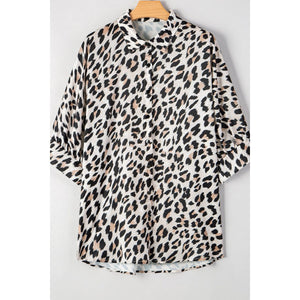 Leopard Print Buttoned 3/4 Sleeve Loose Fit Shirt