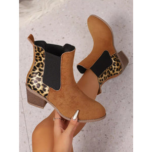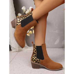 Leopard Print Chelsea Ankle Boots with Block Heel