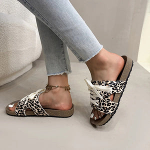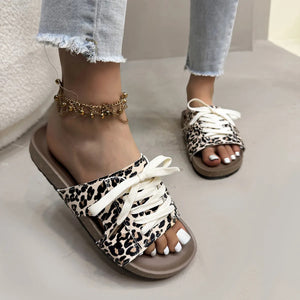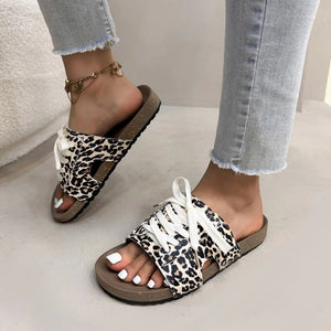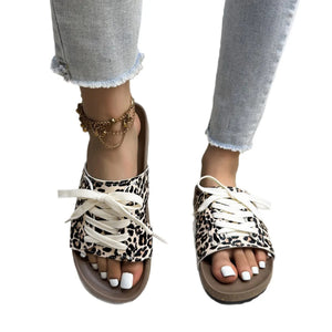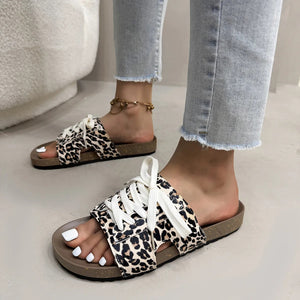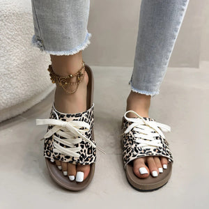 Leopard Print Open Toe Lace-up Sandals