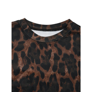 Leopard Round Neck Top and Skirt Set