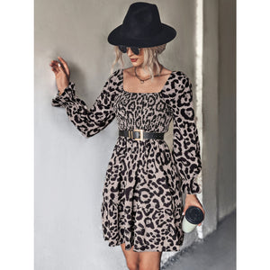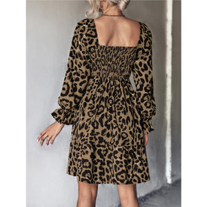 Leopard Smocked Flounce Sleeve Mini Dress