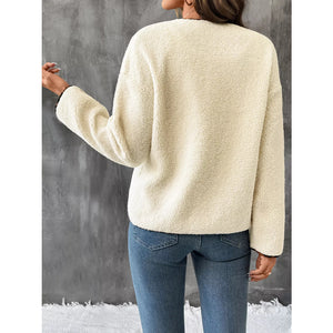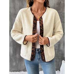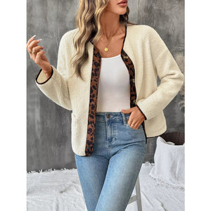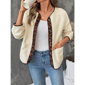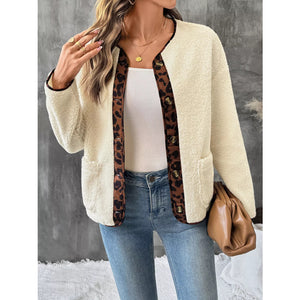 Leopard Trim Button Up Jacket