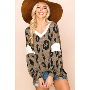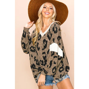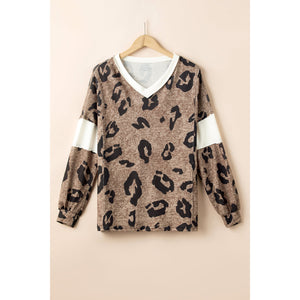 Leopard V-Neck Long Sleeve Blouse