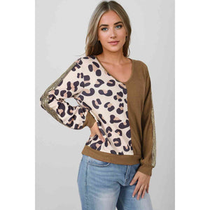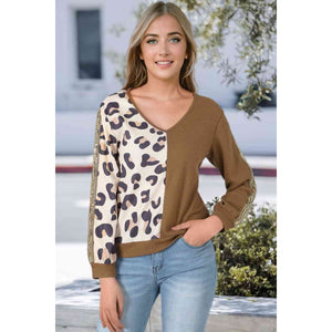 Leopard V-Neck Waffle-Knit Top