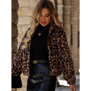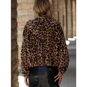 Leopard Zip Up Hooded Outerwear