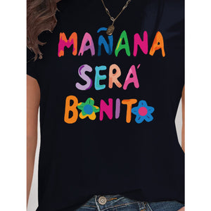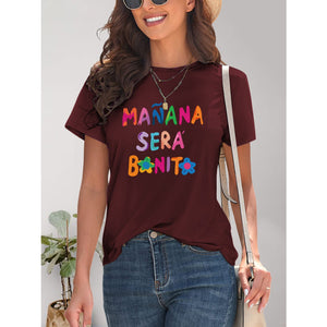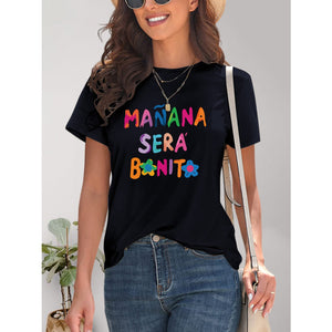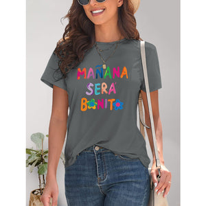 Letter Graphic Round Neck Short Sleeve T-Shirt