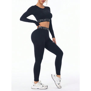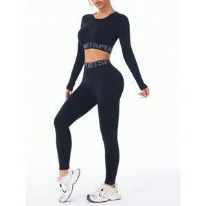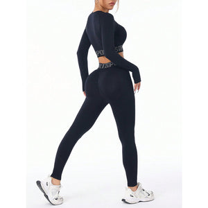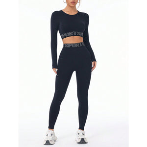 Letter Print Round Neck Long Sleeve Top and Leggings Active Set