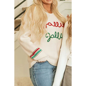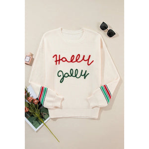 Letter Round Neck Long Sleeve Sweater