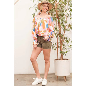 Lime 'N' Chili Abstract Print Off-the-shoulder Long Sleeve Top