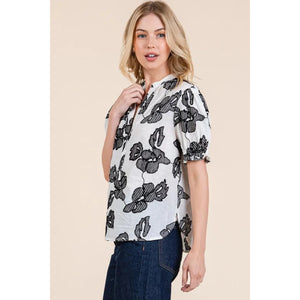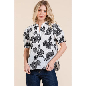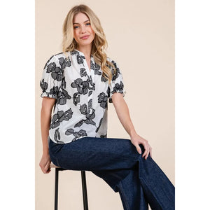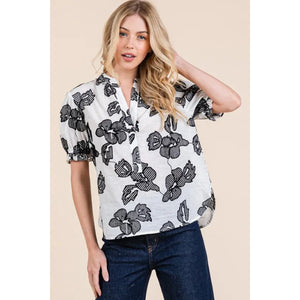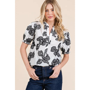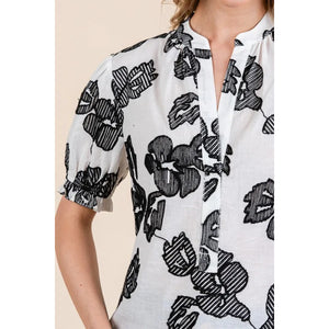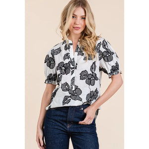 Add a touch of elegance to your wardrobe with this embroidered split neck puff sleeve blouse. The intricate embroidery detailing exudes a sophisticated and stylish appeal. The split neck design offers a flattering and feminine neckline. The puff sleeves add a trendy and chic element to the blouse. Perfect for dressing up any outfit with a touch of class and glamour.
