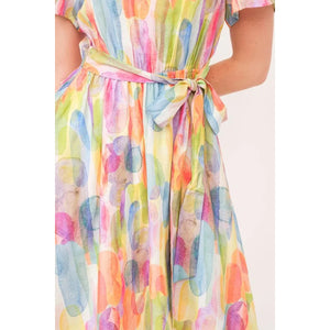 Lime 'N' Chili Watercolor Print Tie Front Midi Dress
