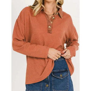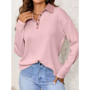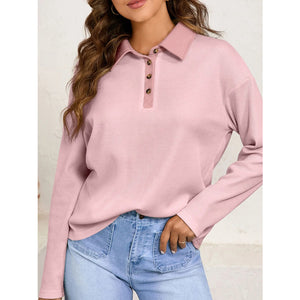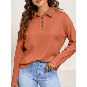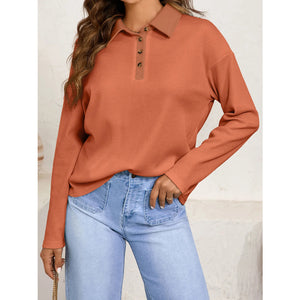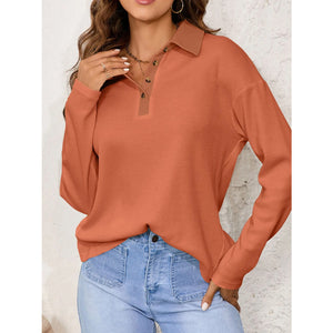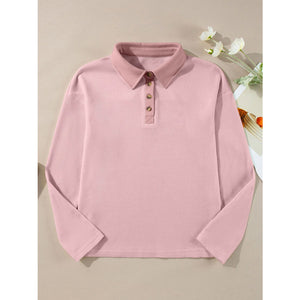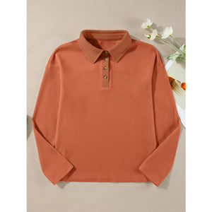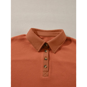 Long Sleeve Thermal Knit Polo Top