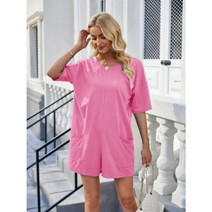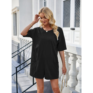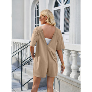 Lovelet Backless Pocketed Round Neck Half Sleeve Romper