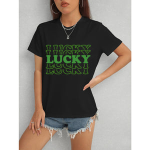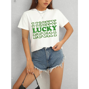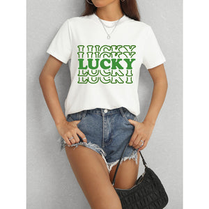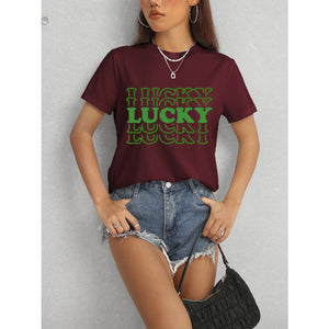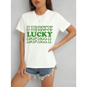 LUCKY Round Neck Short Sleeve T-Shirt