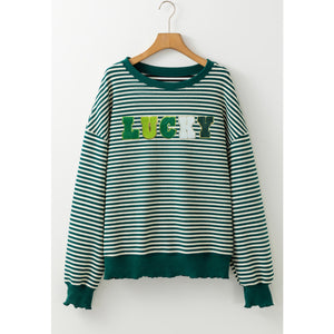 LUCKY Striped Round Neck Long Sleeve Sweatshirt