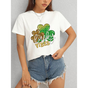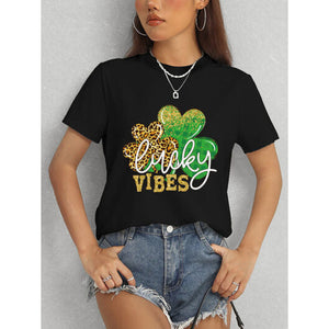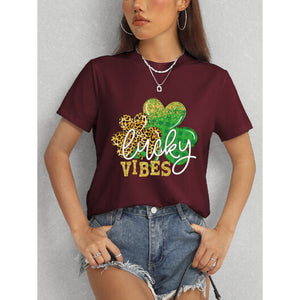 LUCKY VIBES Round Neck Short Sleeve T-Shirt