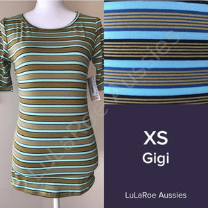 Color: Aqua stripe with mustard/black/slate thin stripes