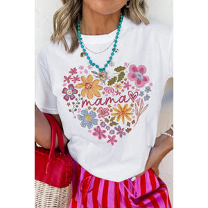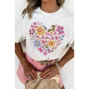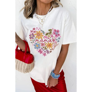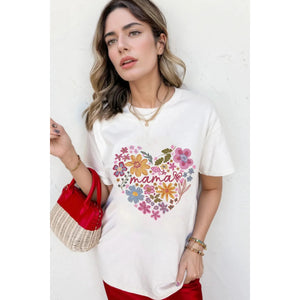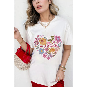 MAMA Flower Heart Cotton Blend Graphic Tee