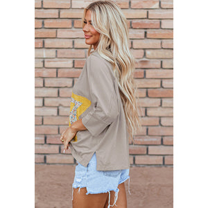 Medium Grey Floral Starbust Exposed Seam Mineral Wash Top