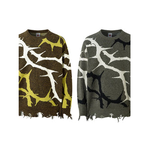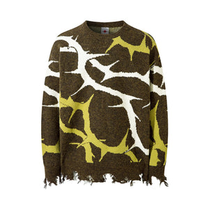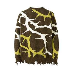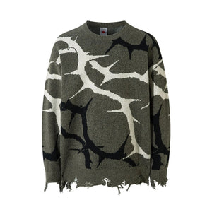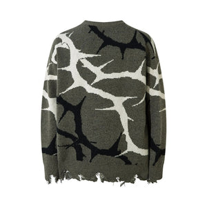 Men's Abstract Pattern Distressed Hem Sweater