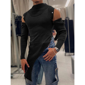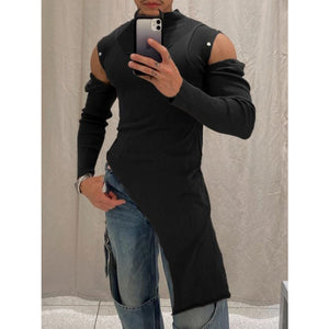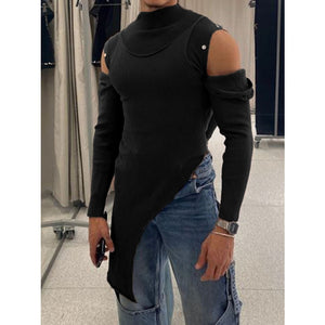 Men's Asymmetrical Mock Neck Cold Shoulder Top