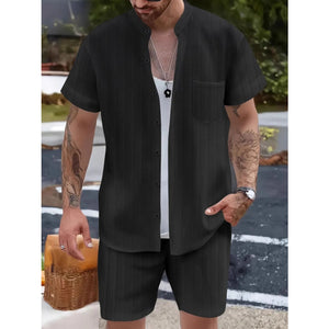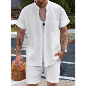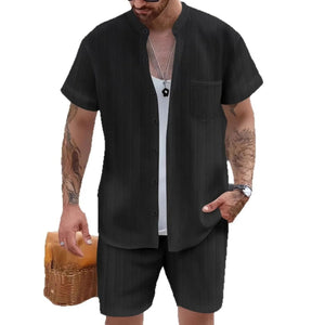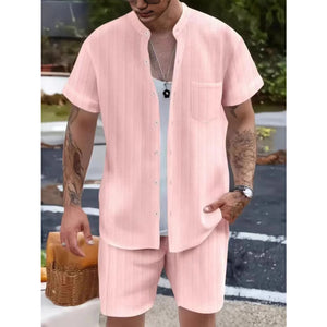 Men's Button Up Short Sleeve Shirt and Shorts Set
