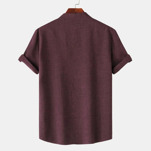 Men's Casual Mandarin Collar Short Sleeve Henley Shirt