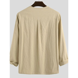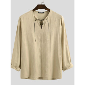 Men's Full Size Casual Lace-Up Long Sleeve Blouse Plus Size