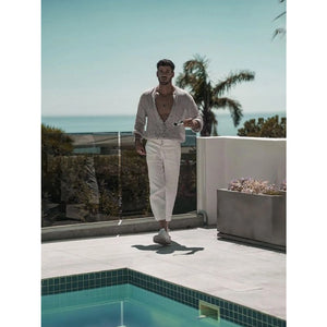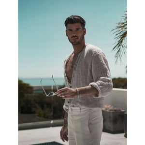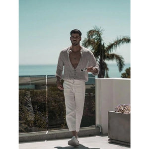 Men's Full Size Casual Linen Button Down Shirt Plus Size