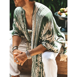 Men's Full Size Fringe Open Front Cover-Up Plus Size