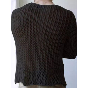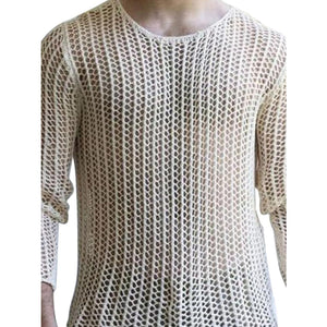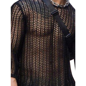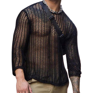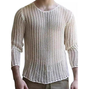 Men's Full Size Hollow Out Round Neck Long Sleeve Top Plus Size