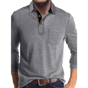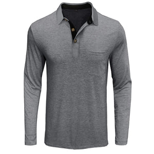 Men's Full Size Long Sleeve Pocket Polo Shirt Plus Size