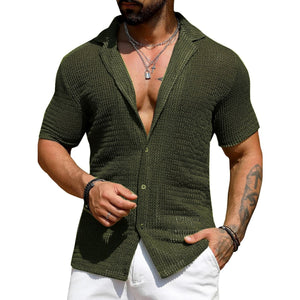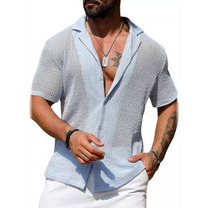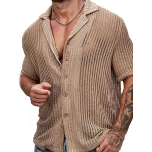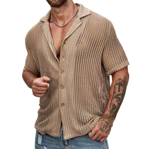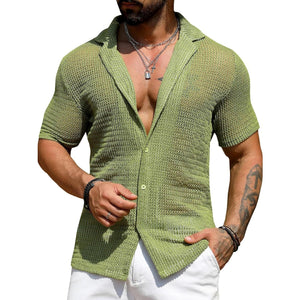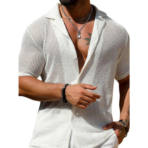 Men's Full Size Openwork Button Down Short Sleeve Shirt Plus Size
