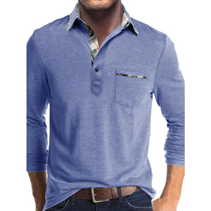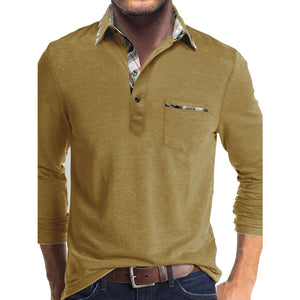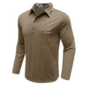 Men's Full Size Plaid Collar Neck Long Sleeve Polo Shirt Plus Size