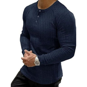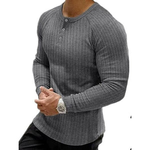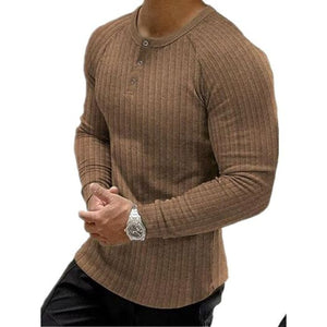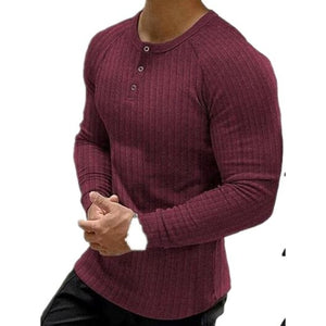 Men's Full Size Ribbed Round Neck Long Sleeve T-Shirt Plus Size
