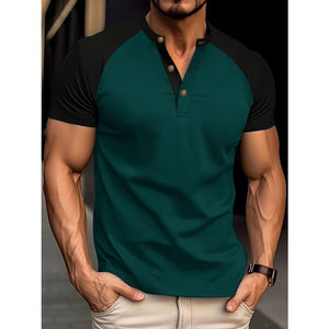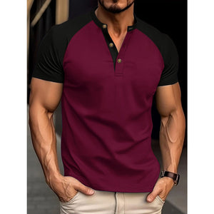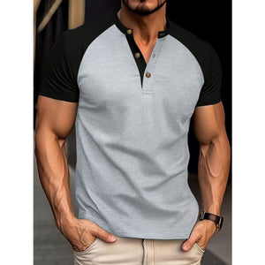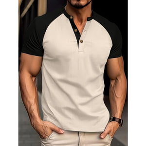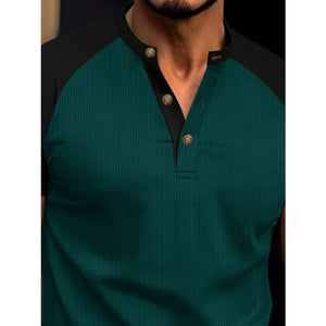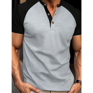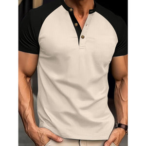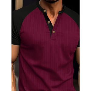 Men's Full Size Waffle-Knit Round Neck Contrast Polo Plus Size