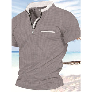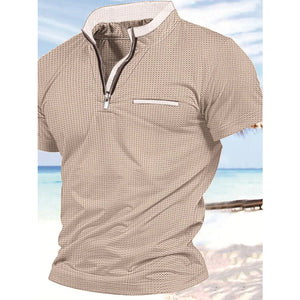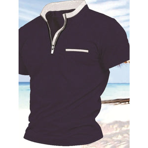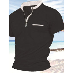 Men's Full Size Zip Collar Short Sleeve Polo Plus Size