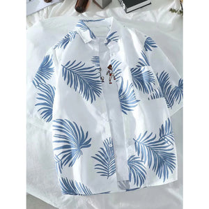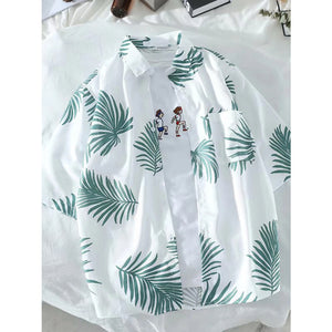 Men's Leaf Print Button Up Short Sleeve Shirt
