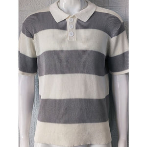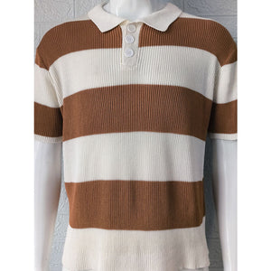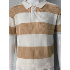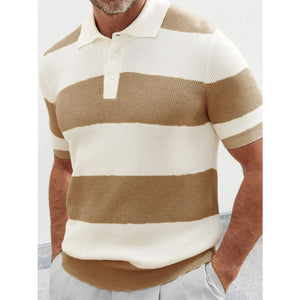Men's Plus Size Collared Neck Striped Ribbed Knit Polo