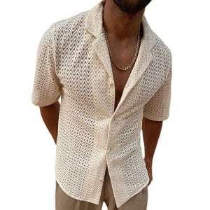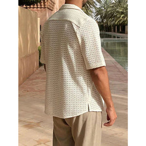Men's Plus Size Herringbone Eyelet Button Down Knit Shirt