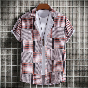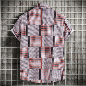 Men's Plus Size Patchwork Plaid Short Sleeve Casual Shirt