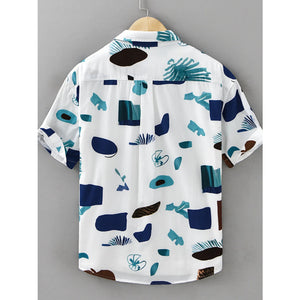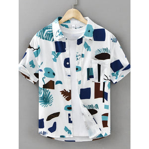Men's Plus Size Printed Button Up Short Sleeve Shirt
