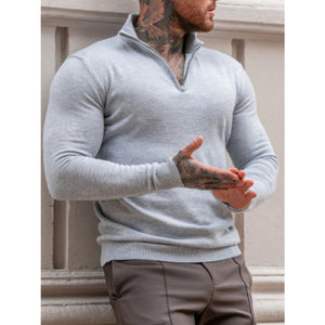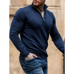 Men's Plus Size Quarter Zip Long Sleeve Knit Top