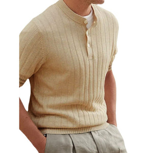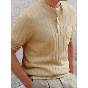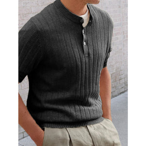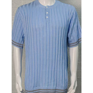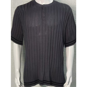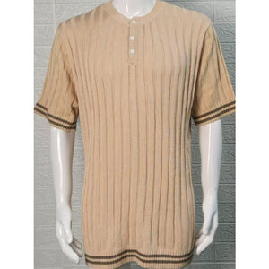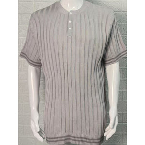 Men's Plus Size Ribbed Quarter Button Round Neck Striped Trim Polo